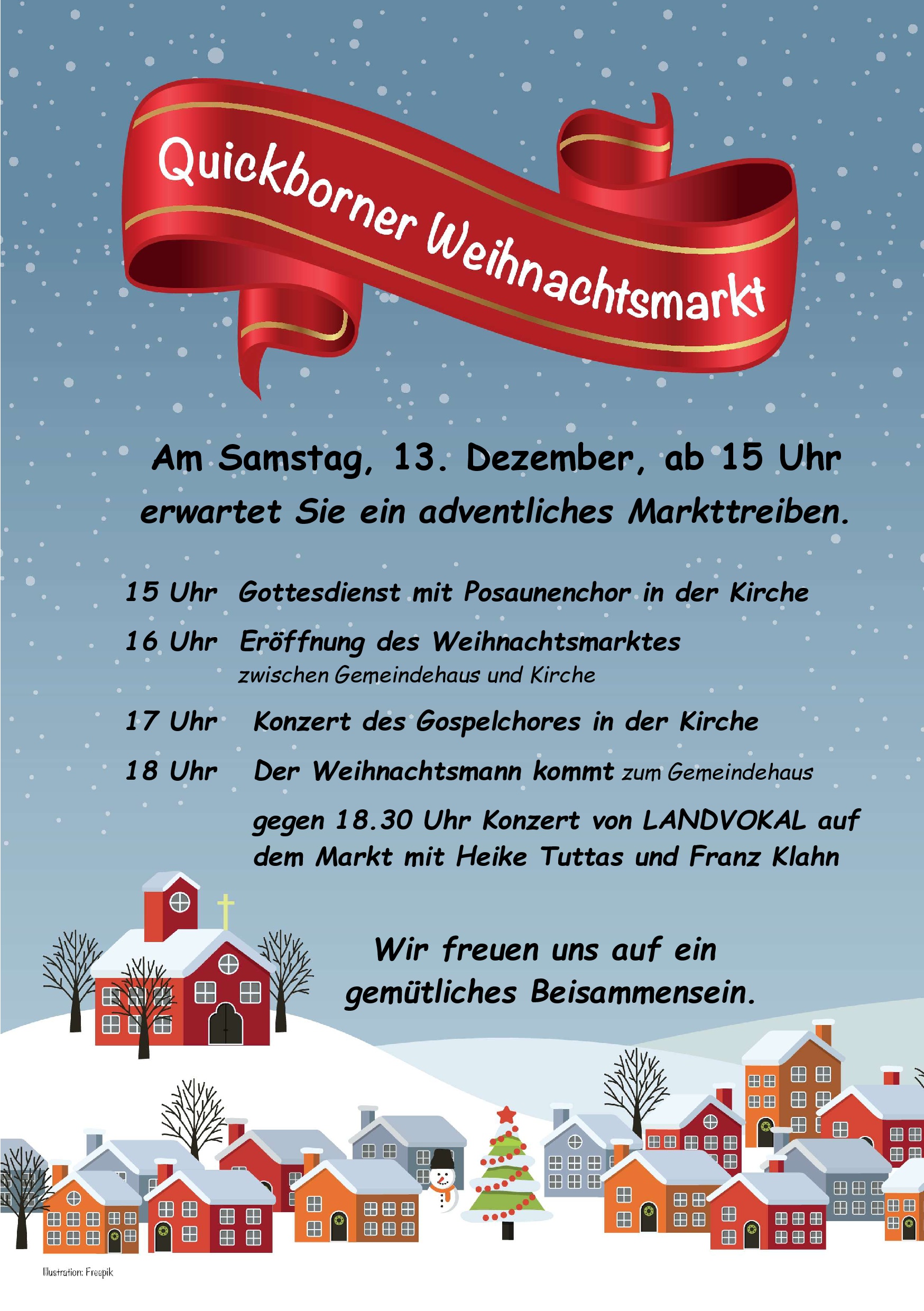 Die Quickborner Vereine, alle BudenbestückerInnen und die Gesamtkirchengemeinde Damnatz-Langendorf-Quickborn freuen sich auf eine großen Zulauf von nah und fern!